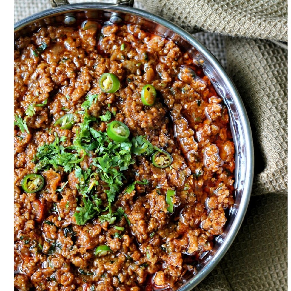 (Carne de Cordeiro moídas e temperada com alho, cebola e gengibre) (Finely chopped lamb cooked with freshly grounded species)