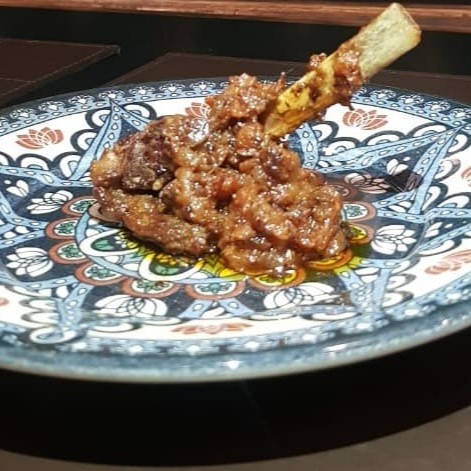 (Carre de cordeiro carne nobre 250 gms picante assado e cozido com tomate e cebola) (Rosted hot and spicy lamb chops served with onion and tomatoes)
