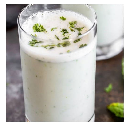 (Bebida batida com iogurte caseiro, cuminho, coentro, sal e pimenta)