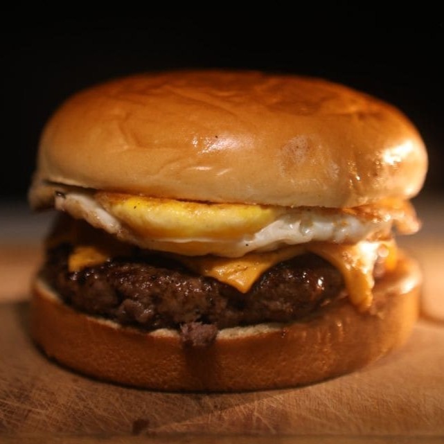 Um delicioso hambúrguer de fraldinha, uma camada generosa de queijo cheddar, ovo e maionese especial da casa.