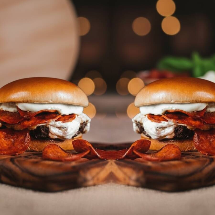 Pão de brioche com um delicioso hambúrguer de fraldinha, coberto com cream cheese, uma generosa camada de pepperoni e maionese caseira.
