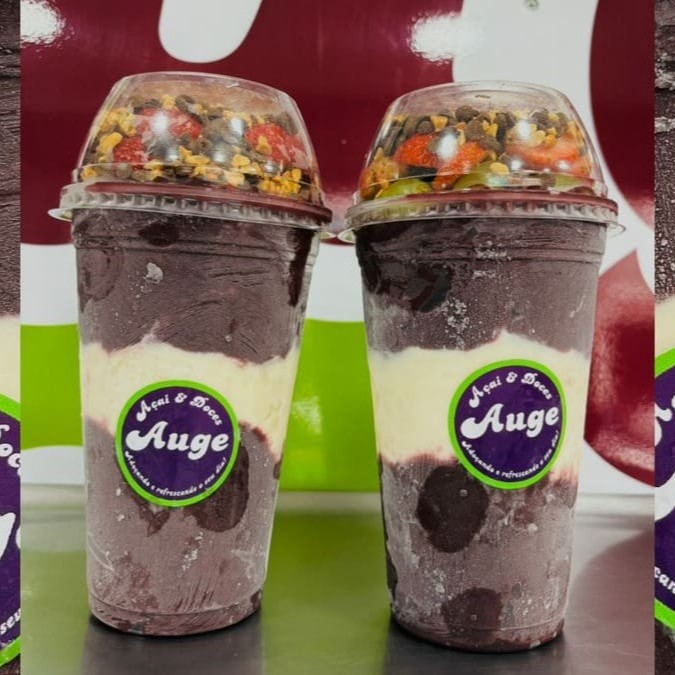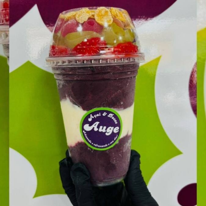 Escolha frutas, 3 acompanhamentos e sorvete e se delicie com uma explosão de sabor do Açai natural super cremoso da Auge.