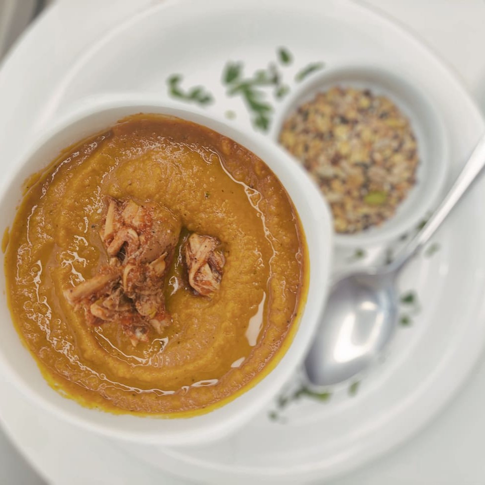 Sopa De Abóbora Japonesa Com Pulled Pork. 500 G