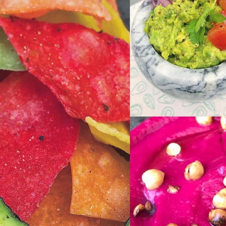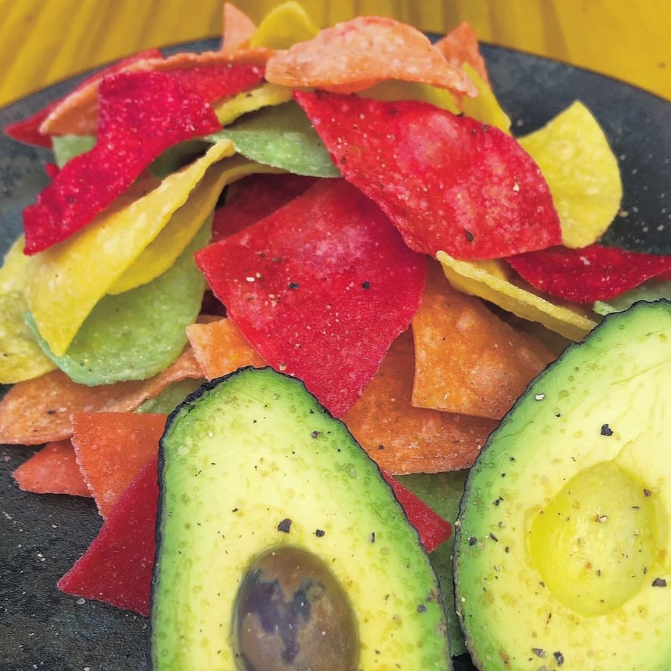 Porçao de Tortilla Chips (60g) + Uma Pasta a sua escolha (Guacamole ou Pink Hummus) Tortilla Chips produzidos artesanalmente por uma família Mexicana que utiliza um processo milenar que data de 1500 Ac, época dos Astecas, chamado Nixtamilização para moer e processar o milho. Isso garante um sabor e valor nutricional único para os Chips.