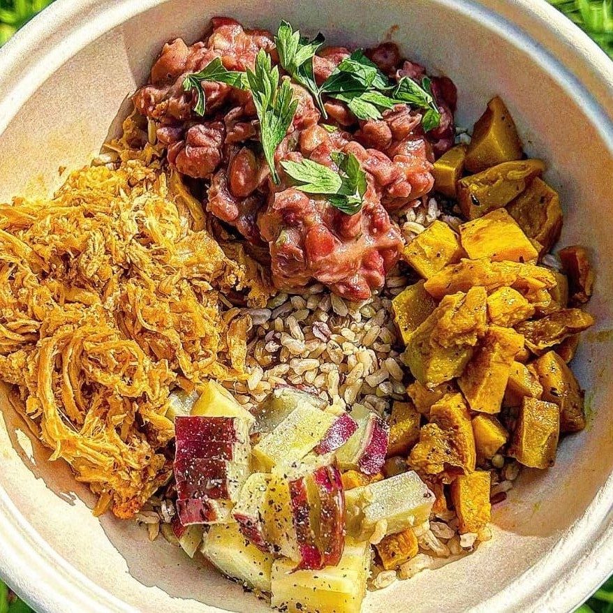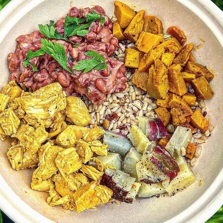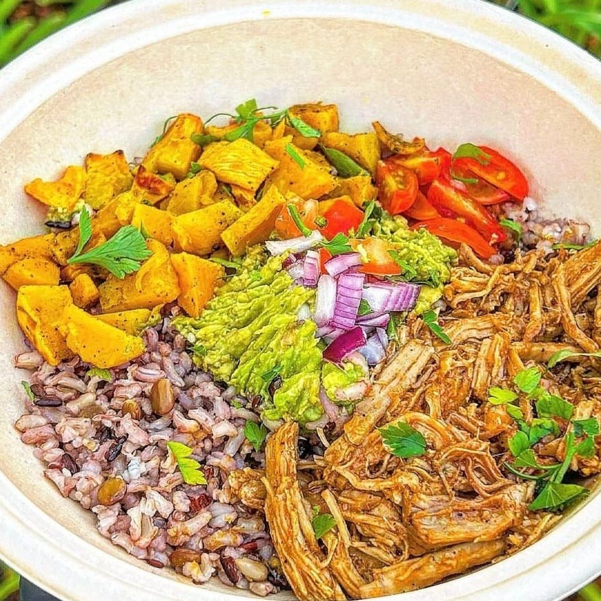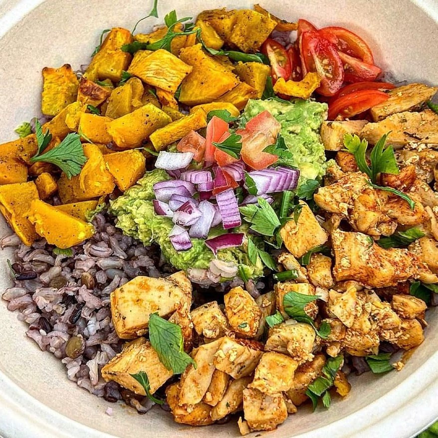 Chicken Hot Bowl – Conforto e sabor em cada garfada! Novidade deliciosa no cardápio! Um bowl 100% quente, nutritivo e super saboroso. Comece com uma base de arroz multigrãos soltinho e levemente firme (150g), acompanhado de feijão vermelho bem temperado e cremoso (120g). Nos toppings, uma combinação nutritiva e irresistível: Batata-doce cozida Abóbora cabotiá assada no ponto certo Cubinhos de