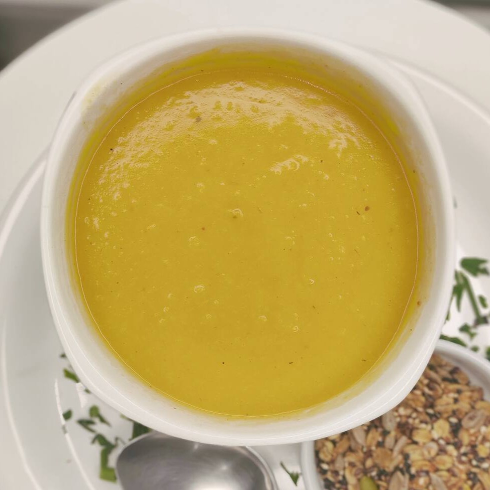 Sopa de abóbora japonesa cremosa, levemente doce com um toque de gengibre acrescida de 80grs do nosso frango em cubos deliciosamente temperado. Feita com ingrediente selecionados, temperos naturais de alho, cebola, salsa e páprica. Essa sopa é perfeita para dias quentes e frios, oferecendo aquela sensação de confort food. 500ml Acompanha granola salgada, à parte. Pode haver mudança de coloração d