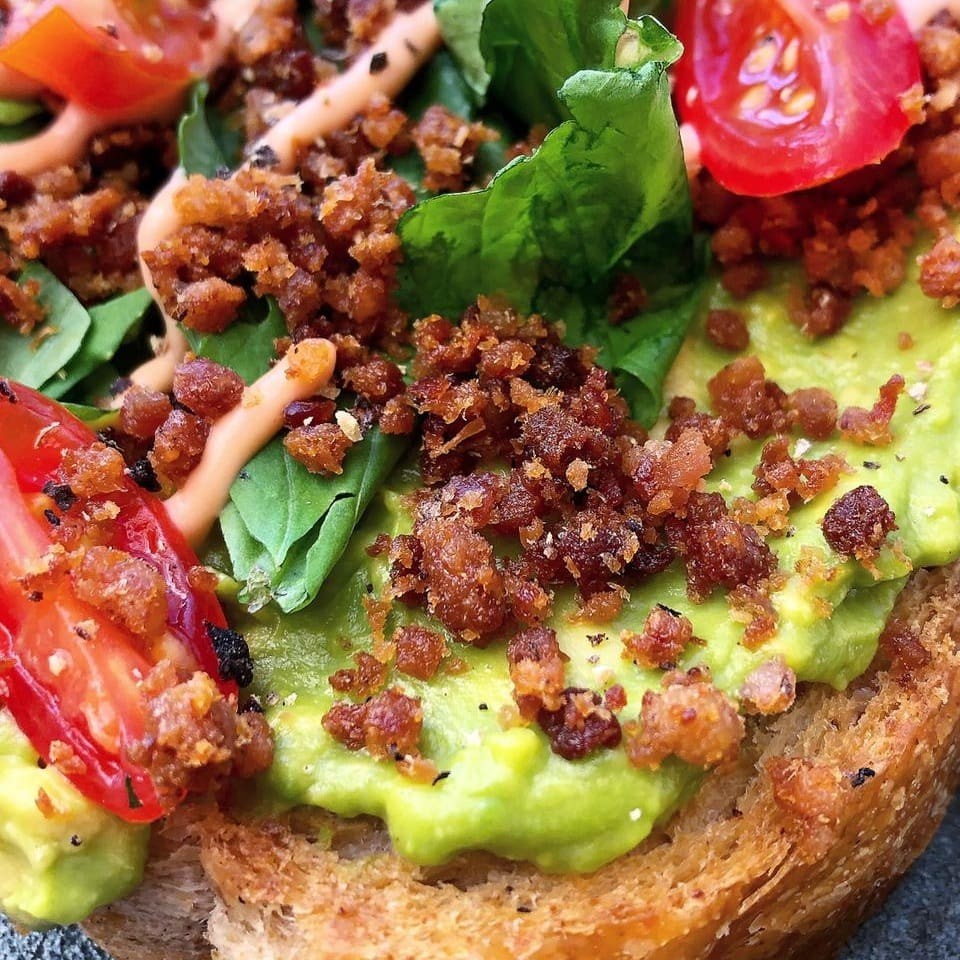 Experimente nosso Avoca Toast B.L.T preparado com pão artesanal de fermentação natural, levemente tostado para a crocância perfeita. Sobre ele, uma generosa camada de pasta de avocado cremosa, acompanhada de bacon bits artesanal crocante, que adiciona um toque defumado irresistível. Finalizado com tomates cereja frescos, folhas de rúcula selecionadas e um toque especial de molho Sriracha, garanti