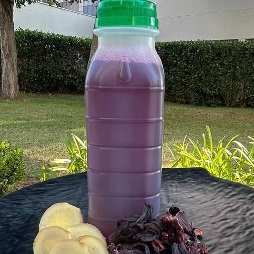 Refrescante Chá de Hibisco com Gengibre. Sem adição de açúcar ou adoçante. 300ml.