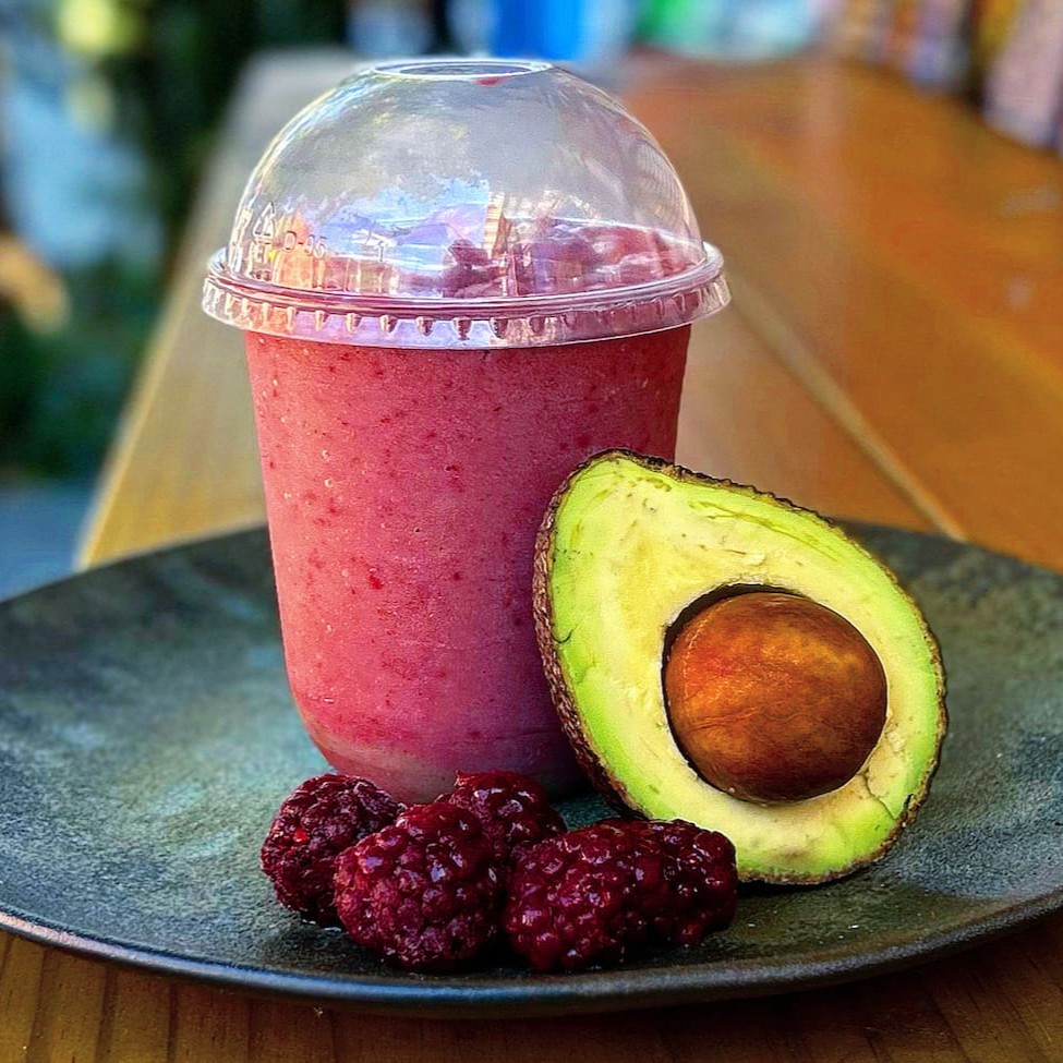 Delicioso Smoothie de Avocado com Frutas Vermelhas. Super cremoso. Sem adição de açúcar ou derivados de leite. 400 ml