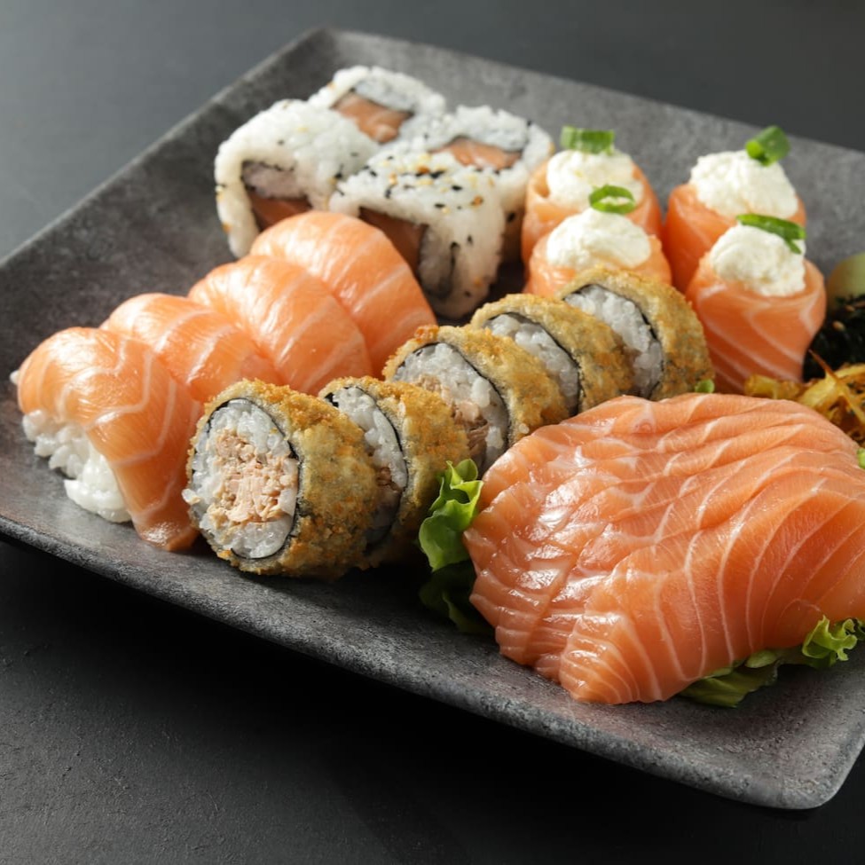 Combinado de 25 peças completo para você desfrutar do frescor do nosso Salmão Premium. São 4 Uramakis, 4 Joes, 4 Niguiris, 6 Sashimis e 5 Hot Rolls.