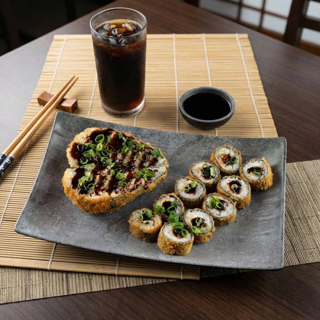 O uramaki é um sushi invertido, com o arroz do lado de fora e o recheio no interior. Geralmente recheado com peixes frescos e legumes, é envolto em alga nori. Uma delícia visual e saborosa, perfeita para quem ama a culinária japonesa!