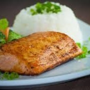 200g salmão grelhado com legumes e gohan (arroz japonês)