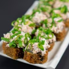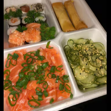 Refeição completa para 1 pessoa, salada sunomono, temaki aberto, sushis variados e para finalizar sobremesa de rolinho primavera doce de leite com coco ralado!!