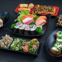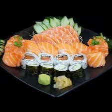 Entradas ( 1 mini sunomono, 1 mini ceviche, 1 mini carpaccio salmão) + 1 combinado de 22 peças + 2 temaki 70g cada + Sobremesa 2 unidades + 1 bebida 1 litro