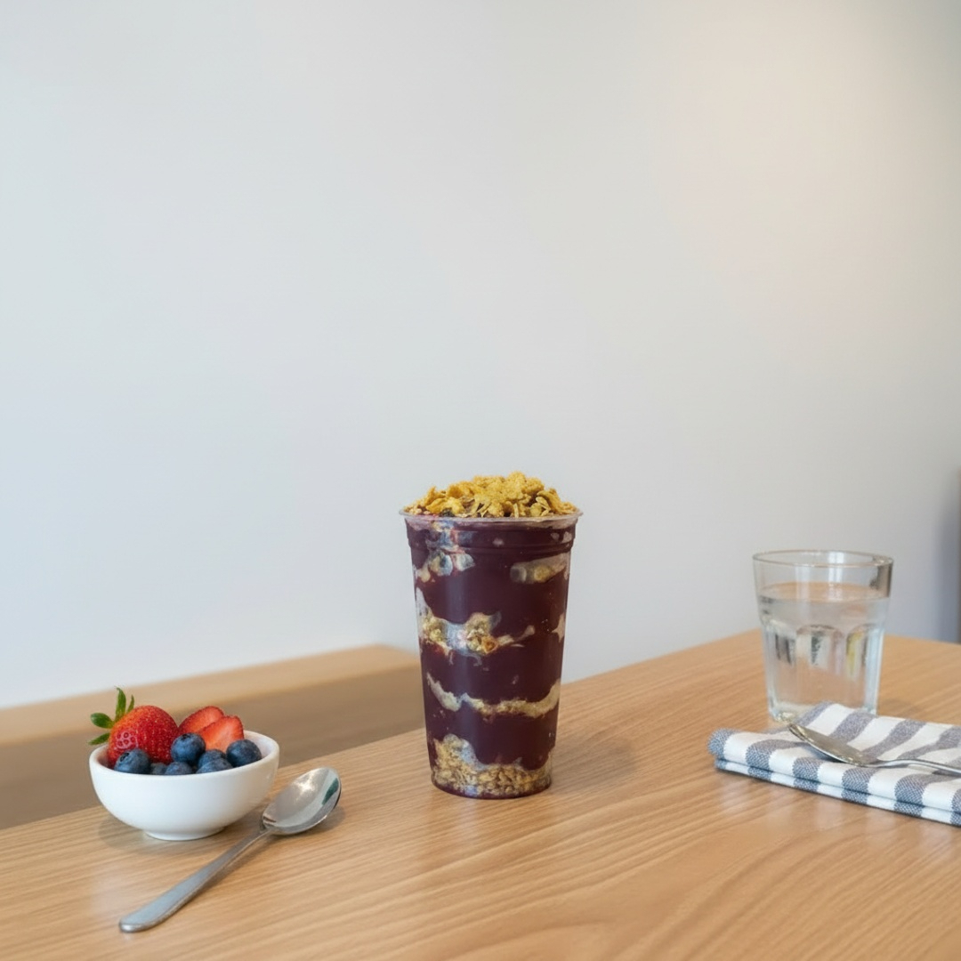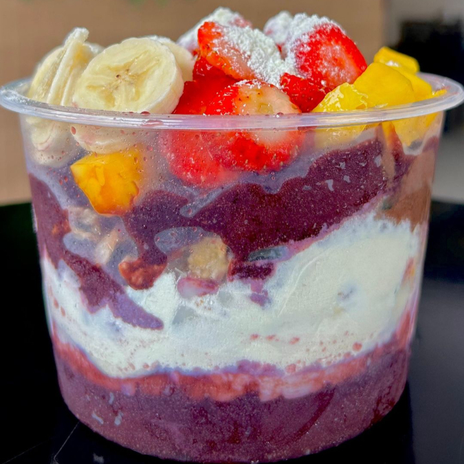 Açaí super cremoso no copo, feito em camadas com acompanhamentos escolhidos por você. (Não enviamos acompanhamentos separados)