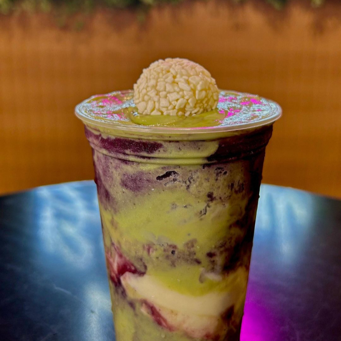 Açaí com creme de pistache, creme de leite Ninho e brigadeiro de leite Ninho: uma combinação irresistível que é pura gostosura! #Açaídosdeuses #Doceperfeição"