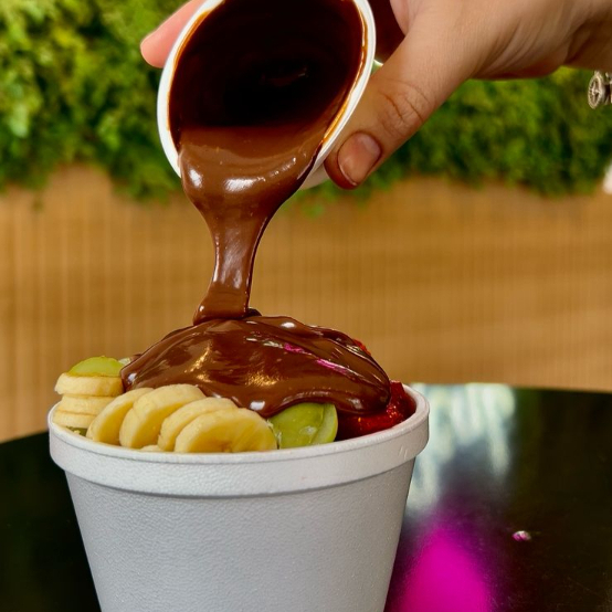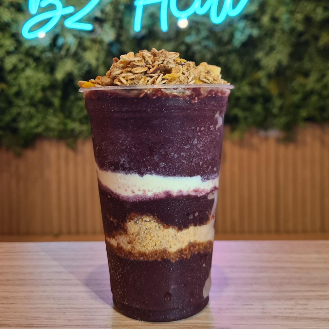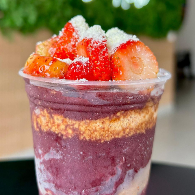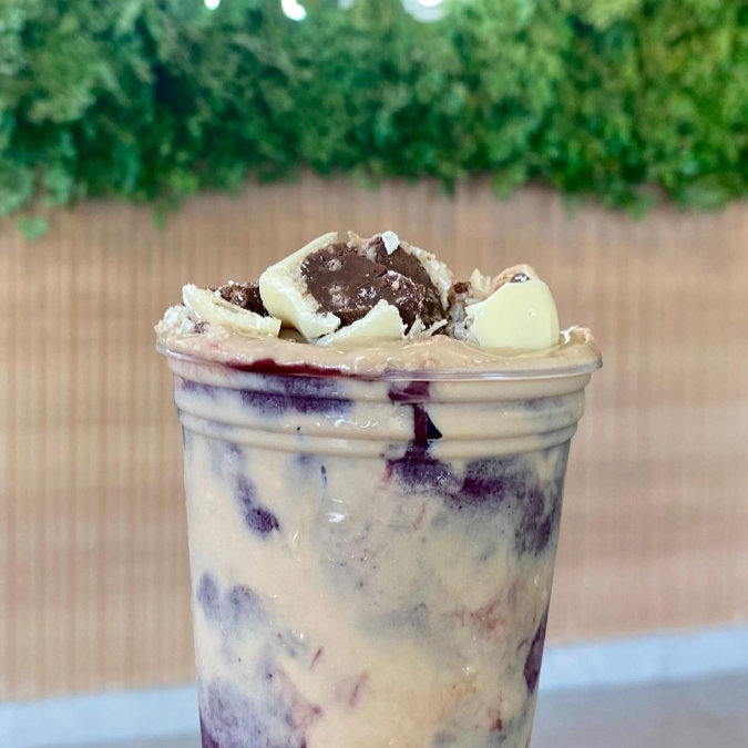 Açaí super cremoso no copo, feito em camadas com acompanhamentos escolhidos por você. (Não enviamos acompanhamentos separados)