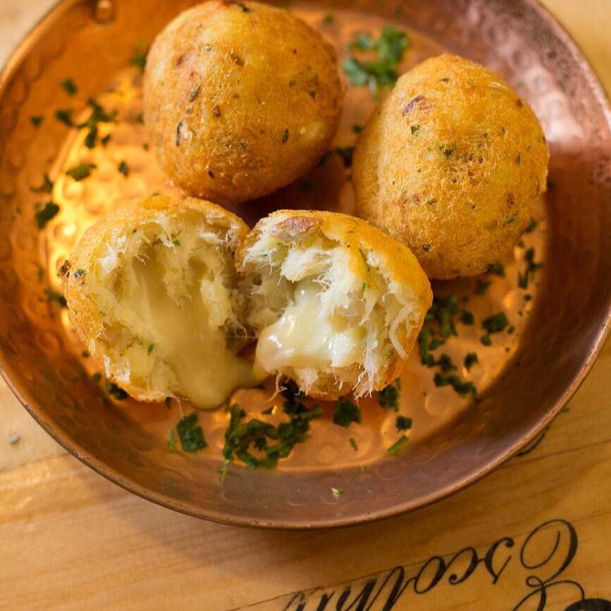O nosso famoso bolinho, recheado com um mix de queijos da casa.