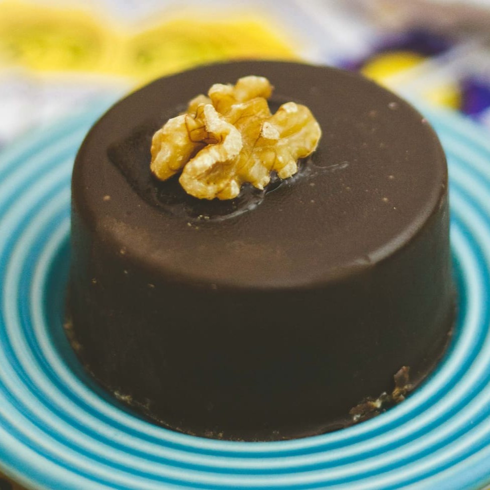 Creme de nozes com cobertura de chocolate.