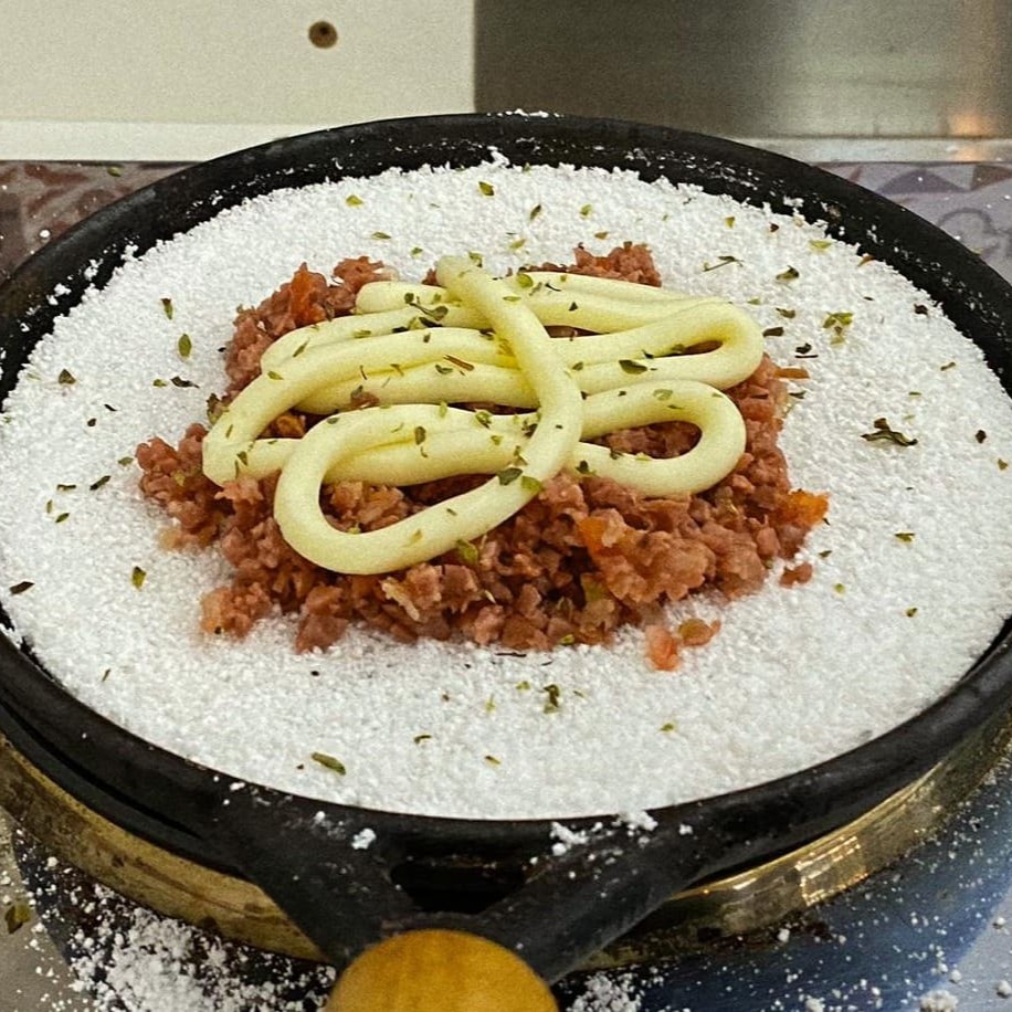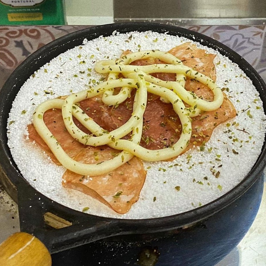 Salame fatiado, Requeijão, temperado com azeite extra virgem e uma pitada de orégano