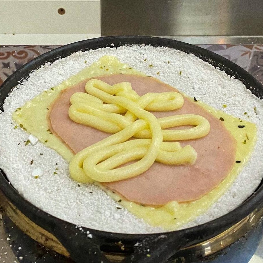 Calabresa Sadia triturada e temperada com molho especial a base de tomate e cebola + Mussarela fatiada + Cheddar