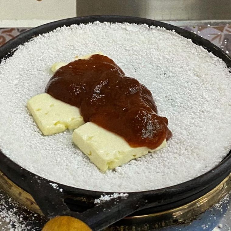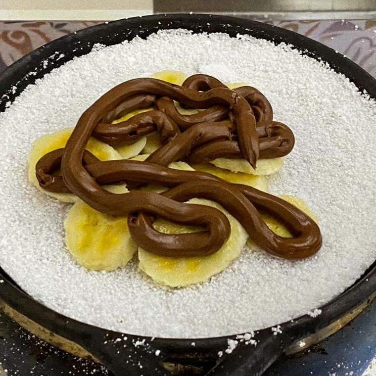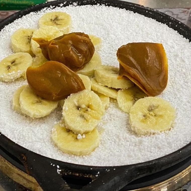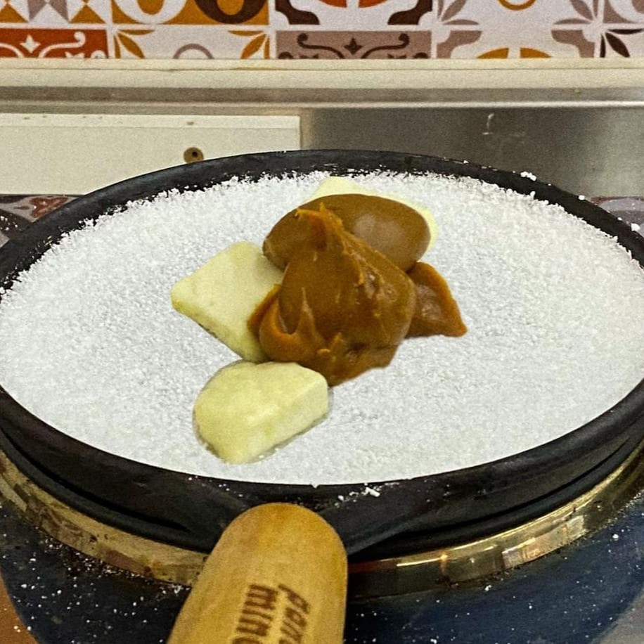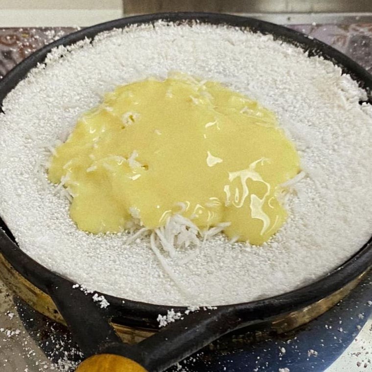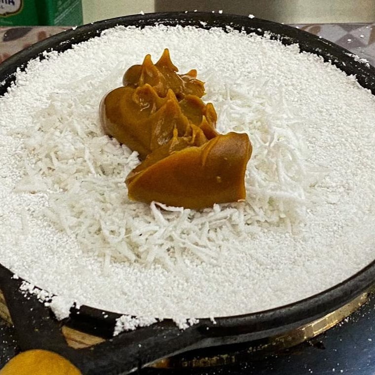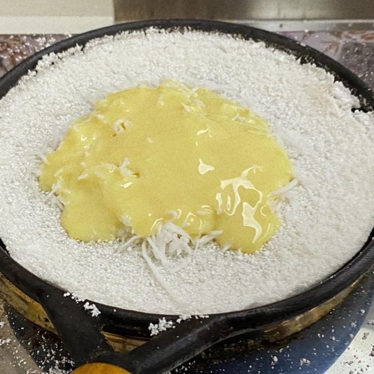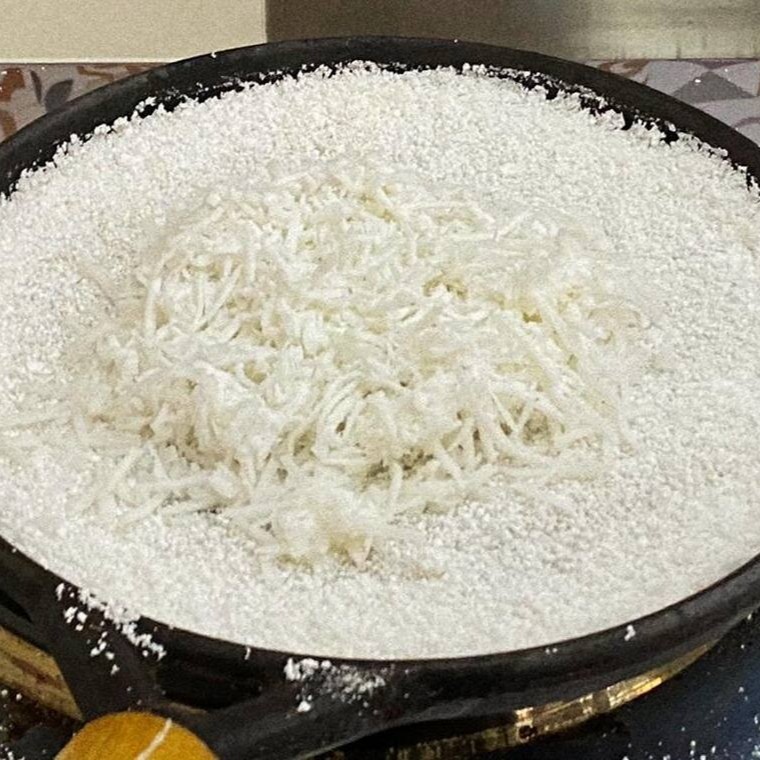 Coco fresco ralado, mussarela fatiada e leite condensado