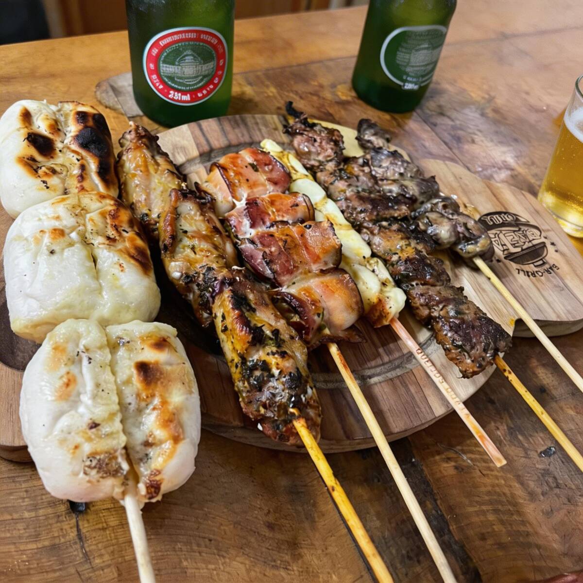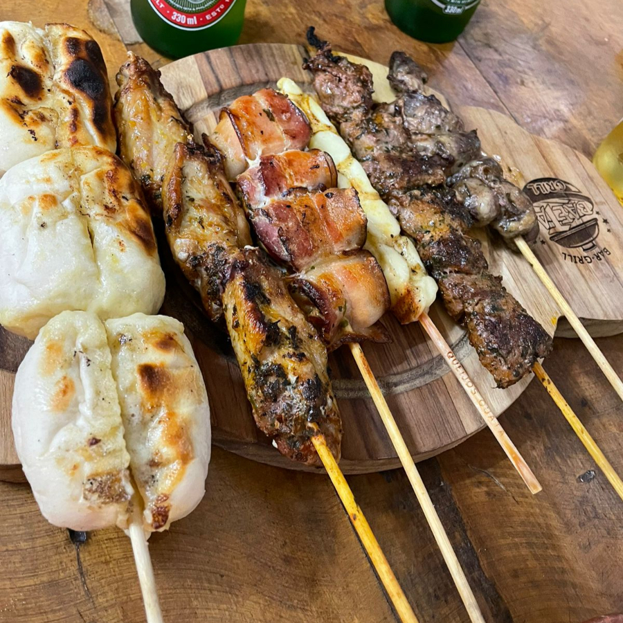 Delicioso Churrasco Misto Acompanha: Suculenta Carne De Alcatra, Sobrecoxa De Frango Desossada, Linguiça, Arroz, Feijão, Farofinha E Vinagrete.