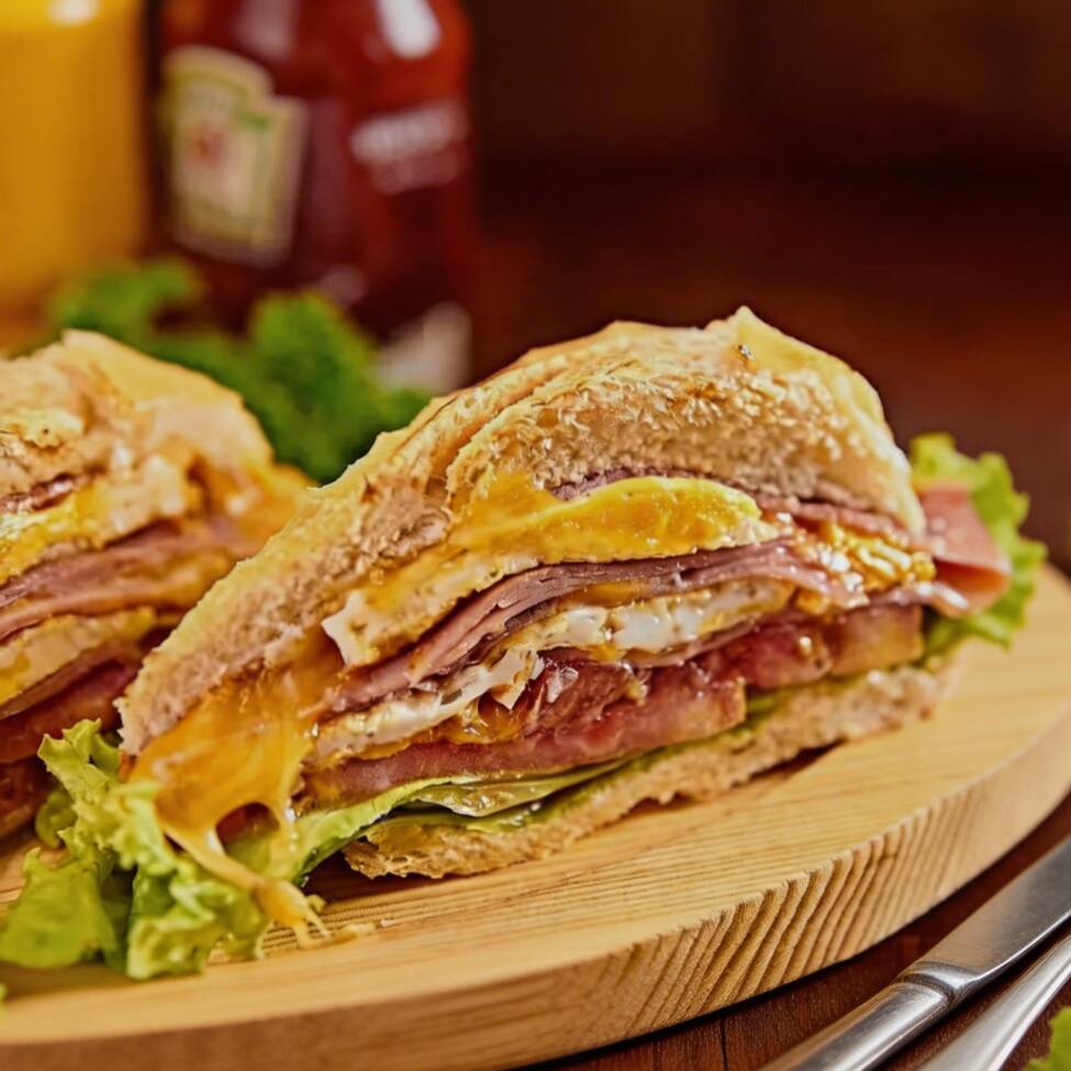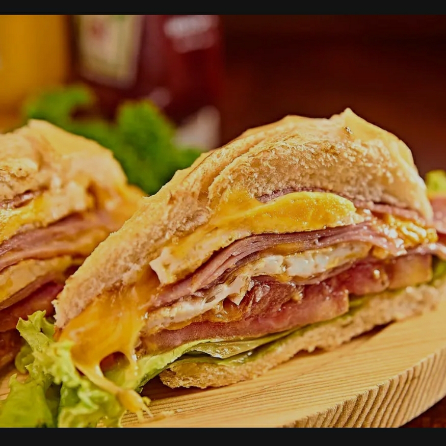 pão frances, presunto , mussarela , ovo frito, tomate e alface