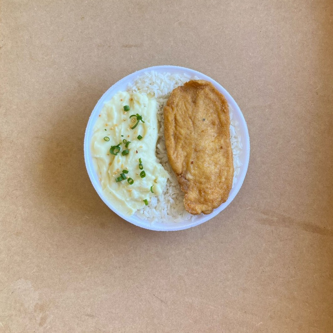 Marmita com delicioso filé de frango empanado na massa crocante acompanhado de arroz branco, feijão e purê de batatas inglesas. Marmita indicada para 01 pessoa.