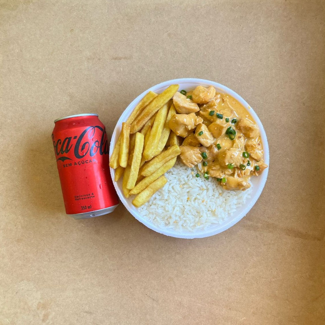 Strogonoff Frango & Fritas + Lata Coca Zero + R$ 14,99 Leve Outra Marmitex