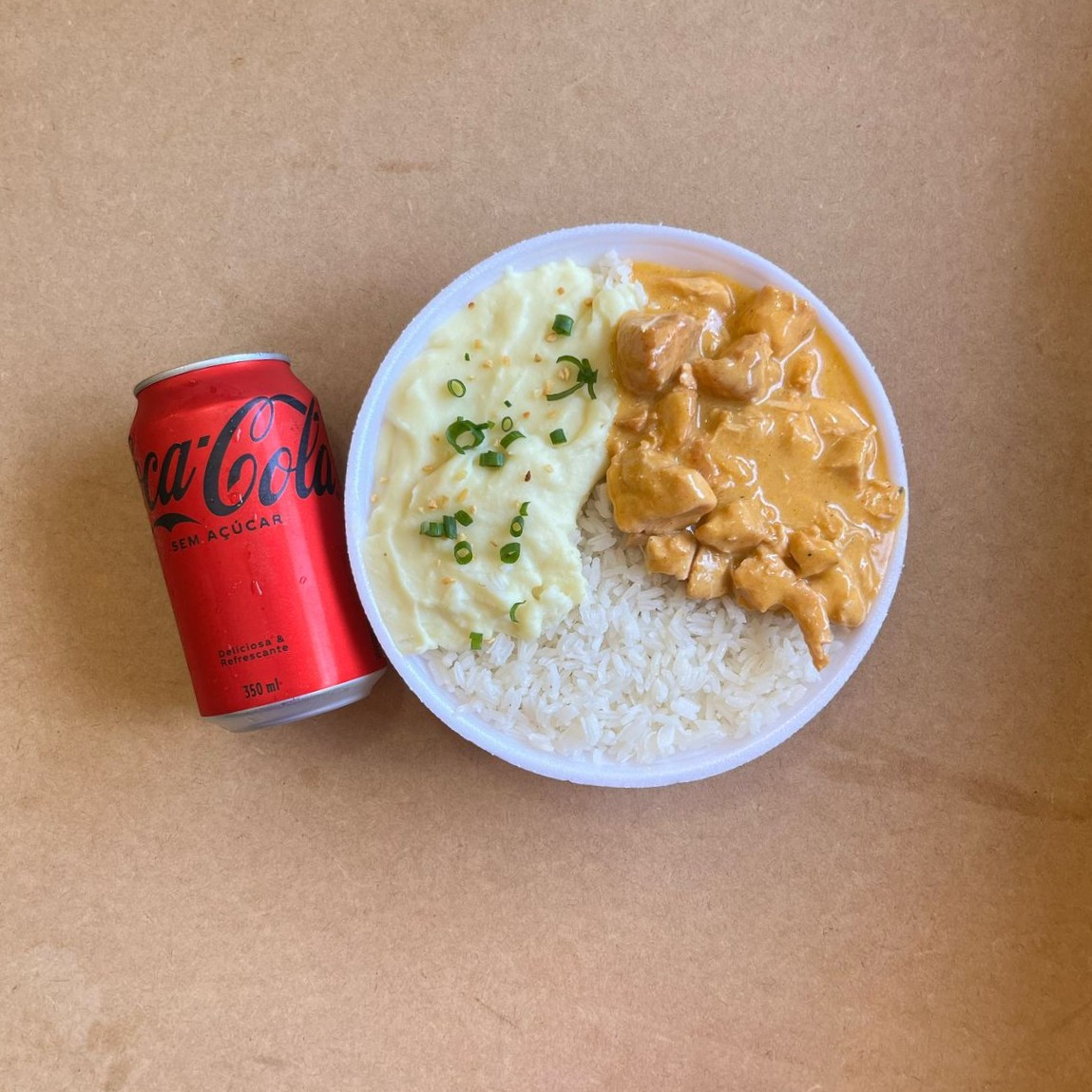 Strogonoff Frango & Purê + Lata Coca Zero + R$ 14,99 Leve Outra Marmitex