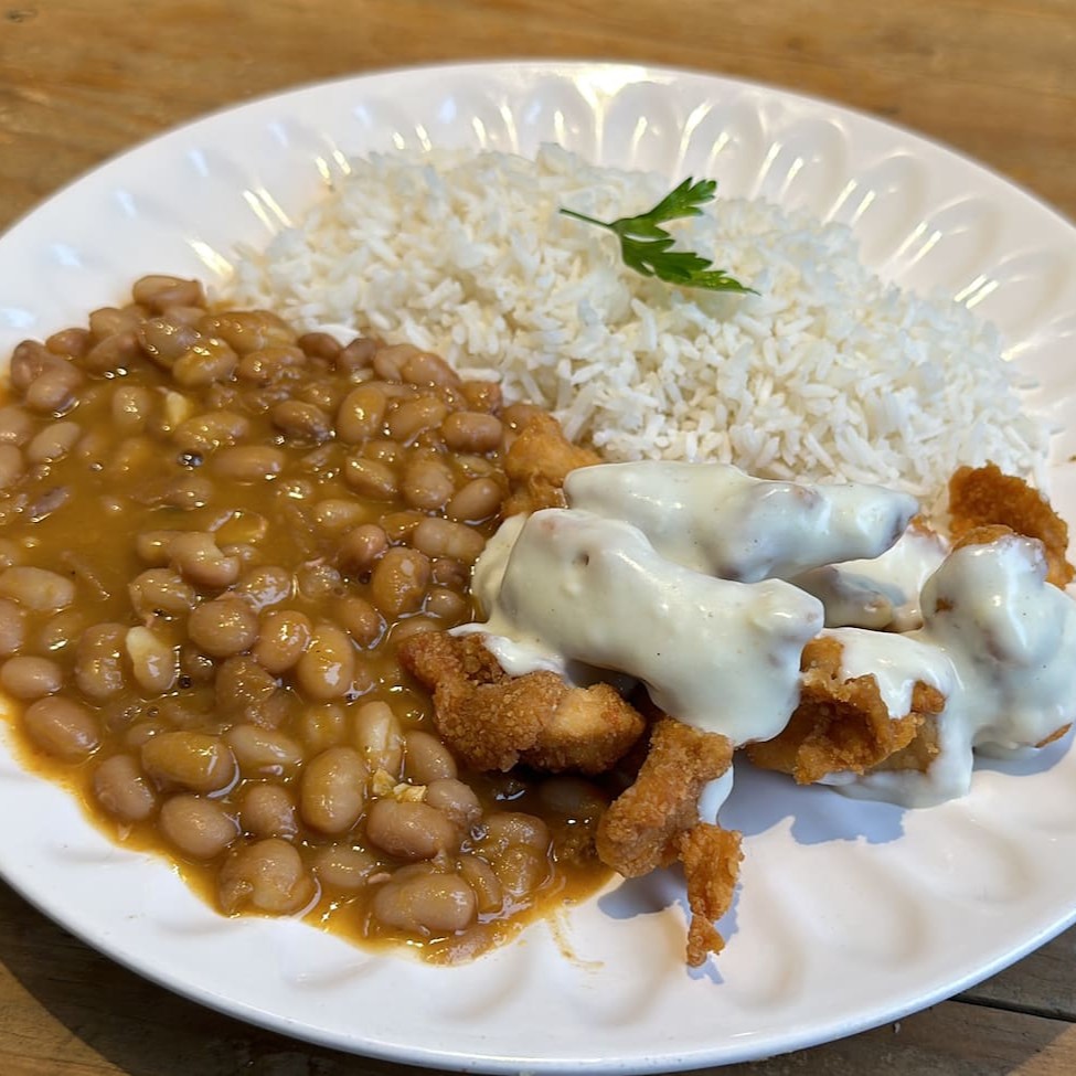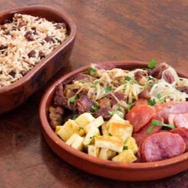 Delicioso Arroz , Carregado de Bacon , Calabresa , Carne Seca Desfiada , Queijo Coalho , Feijão Fradinho , Temperos Especiais e Finalizado na Manteiga de Garrafa + Ovo Frito + Farofa especial + Vinagrete