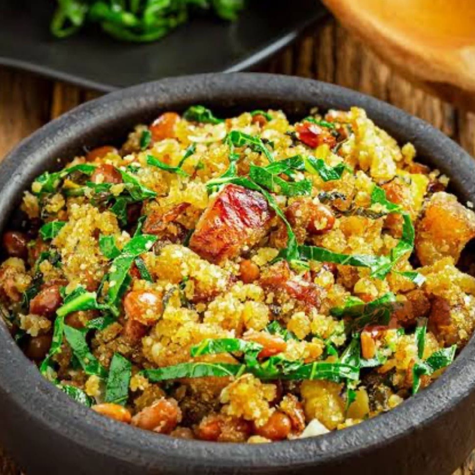 Feijão tropeiro ( farofa, feijão, bacon,ovo,calabresa,couve