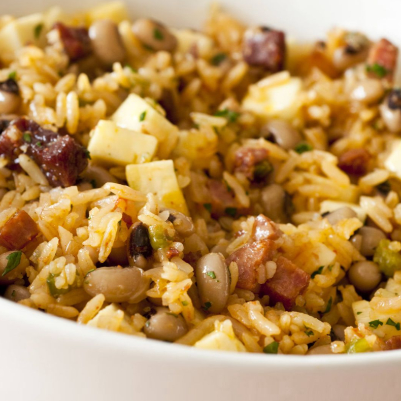 Delicioso Arroz , Carregado de Bacon , Calabresa , Queijo Coalho , Feijao Fradinho , Temperos Especiais e Finalizado na Manteiga de Garrafa.aprx 800 grs