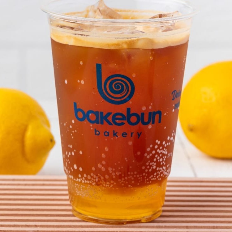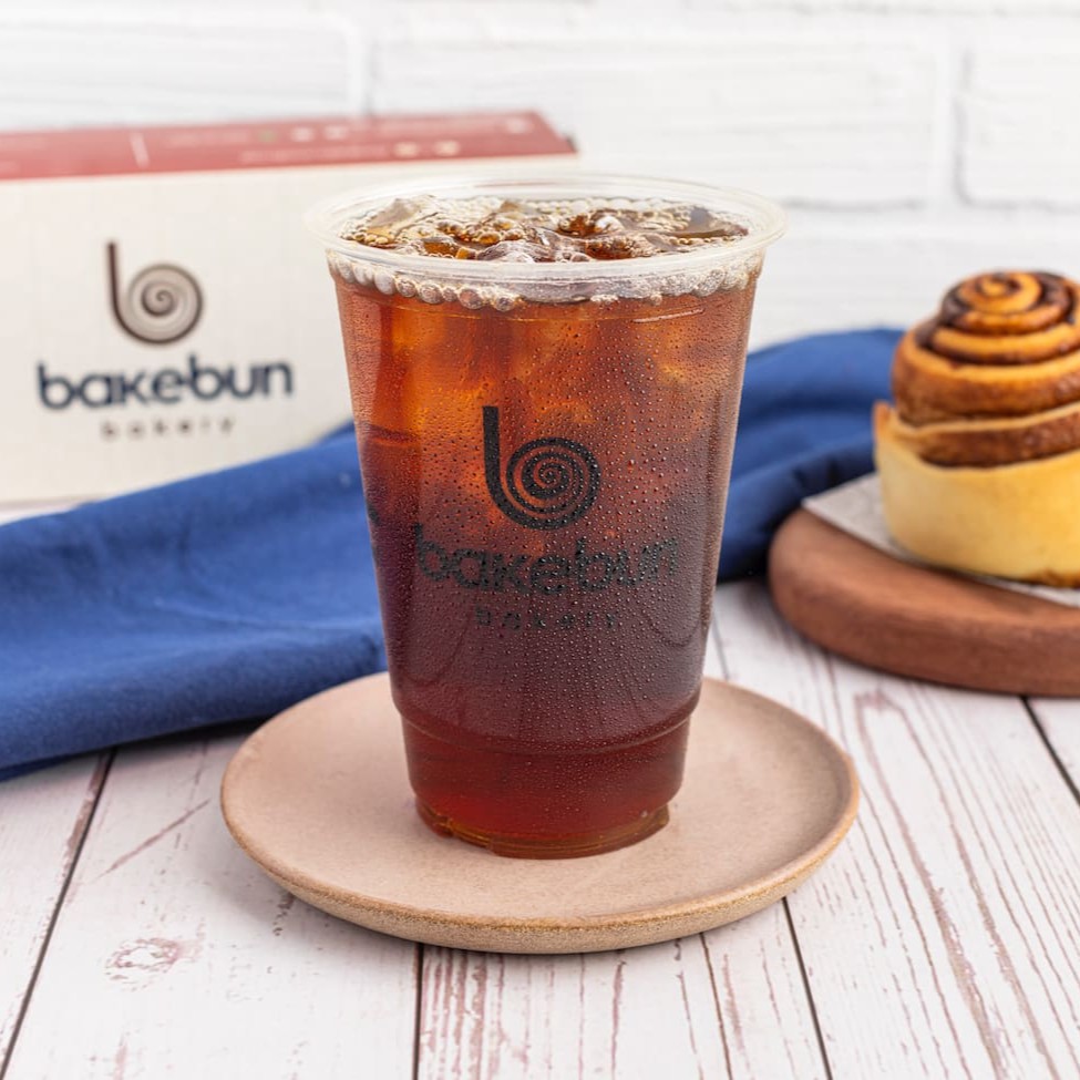 Um dos mais pedidos da Bakebun! Nosso Cinnamon Roll artesanal com cobertura especial de cream cheese, açúcar e manteiga, fofinho e quentinho, acompanhado de um Chá Gelado de Pêssego super refrescante.