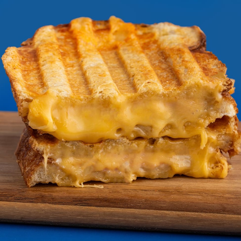 Um abraço tipo estica e puxa. Esse é o nosso Queijo quente feito com pão rústico de longa fermentação, queijo prato derretido e manteiga. Só falta o café. Tá esperando o que? Que hamburger e cheeseburger que nada!