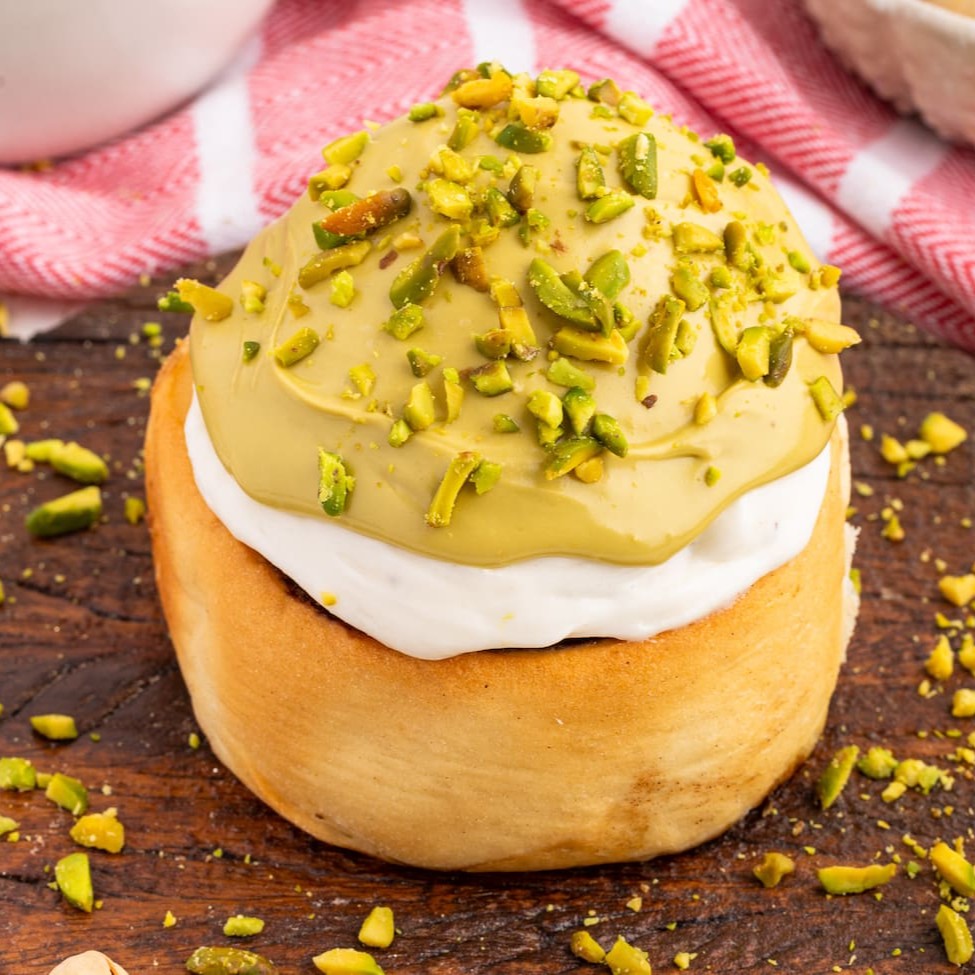 O nosso Cinnamon Roll Pistache é um irresistível rolo de canela é delicadamente coberto com o nosso creme de pistache feito na casa, rico e cremoso. Para finalizar, polvilhamos pedaços crocantes de pistache, trazendo uma textura única e um sabor inigualável. Uma combinação irresistível que promete uma experiência culinária memorável. Não é bolo, mas é uma massa muito fofinha enrolada com açúcar ma