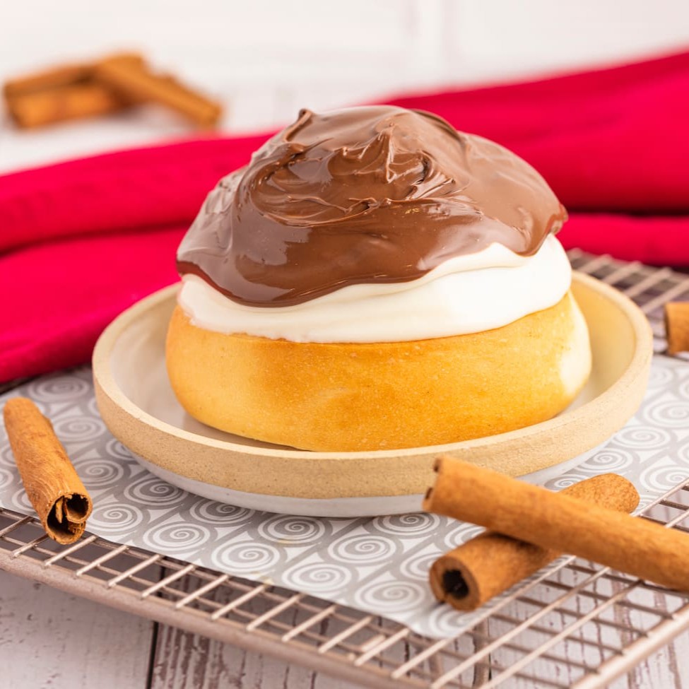 A combinação tão aguardada... O creme de avelã mais famoso do mundo com toda sua cremosidade, agora no seu cinnamon roll cobertura especial. Sinta em cada mordida a explosão de sabor da canela e da Nutella... O match perfeito. Não é bolo, nem bolo no pote, mas é uma massa muito fofinha enrolada com açúcar mascavo, manteiga e canela.