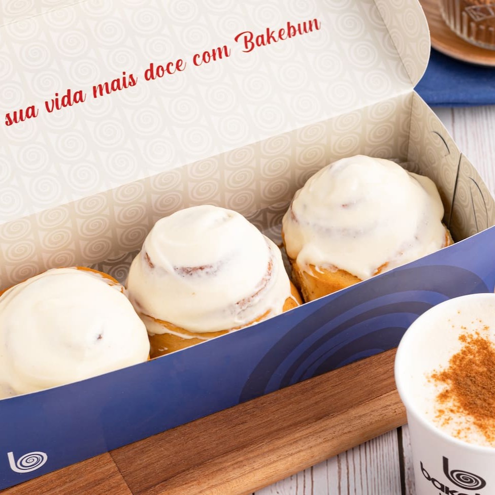 Quer ainda mais cremosidade? Acrescentamos um delicioso caramelo artesanal no nosso bakebun cinnamon roll cobertura especial. Mais cremoso e gostoso. Não é bolo, nem bolo no pote, mas é uma massa muito fofinha enrolada com açúcar mascavo manteiga e canela.