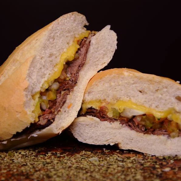 Pão francês, Carne Contra-Filé passado na chapa, Queijo Mussarela e Maionese.