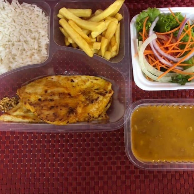Posta de Salmão Grelhado arroz ,feijao ESCOLHA MAIS UM ACOMPANHAMENTO