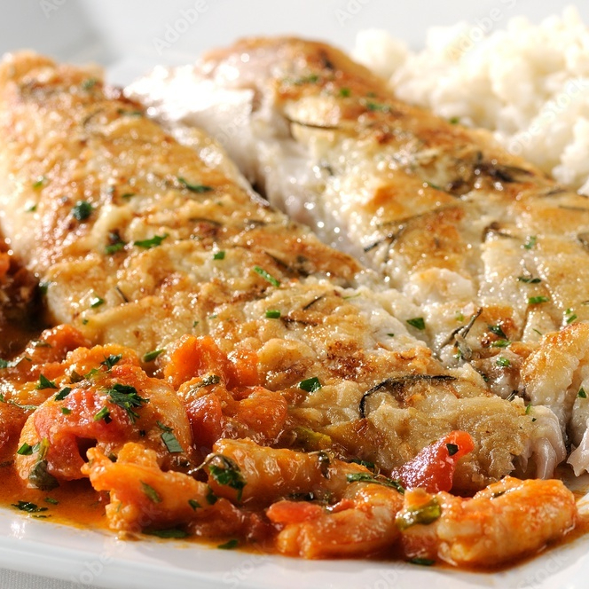Filé De Pescada À Milanesa Com Molho De Camarão