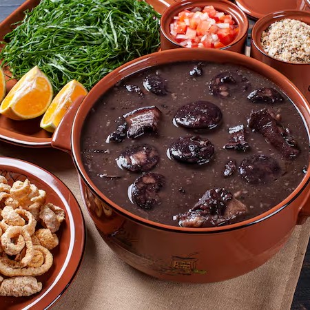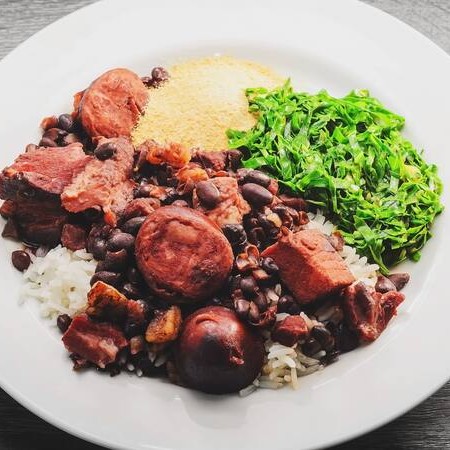 Deliciosa feijoada com carne suína, linguiça e bacon, servida com arroz soltinho, farofa crocante, torresmo douado e couve refogada no alho. Esse prato só estará disponível às quartas-feiras. Tradição brasileira no seu prato!