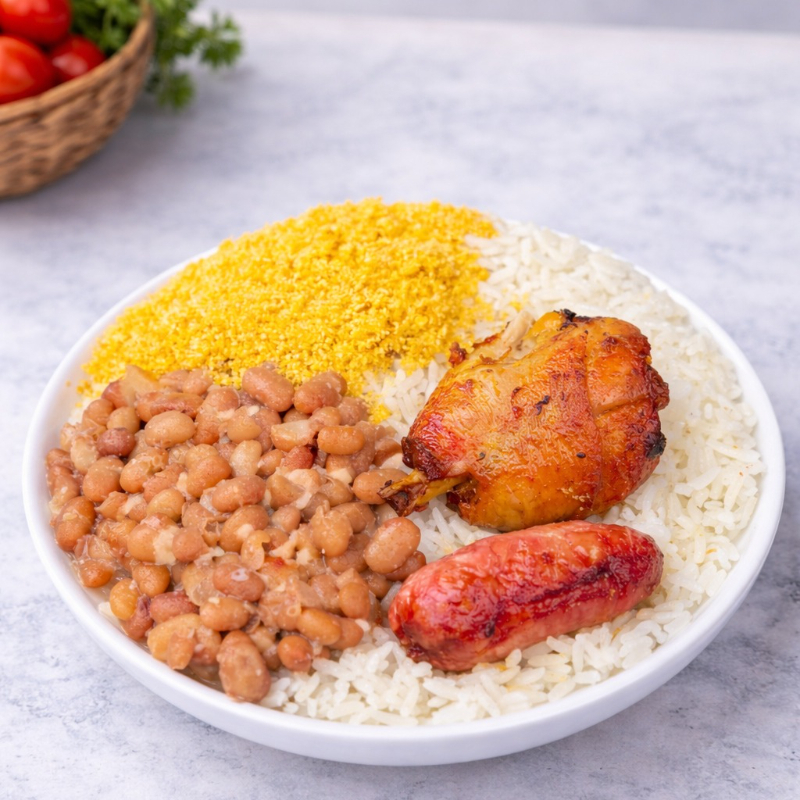 Nosso clássico empanado com frango ou carne. Servida com a combinação perfeita de arroz soltinho, feijão tropeiro, batata crocante e aquela salada fresca que dá o equilíbrio.