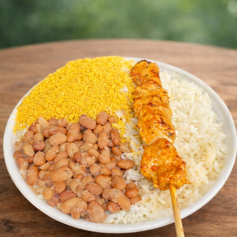 Para tornar seus espetinhos ainda mais suculentos, nada melhor do que um vinagrete fresco no capricho ou uma farofinha deliciosa.