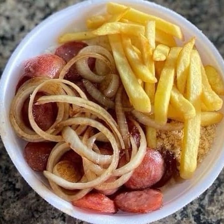 "Foto Ilustrativa". Acompanha: bacon, calabresa, feijão fradinho, queijo coalho e peixe