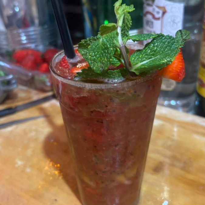 Morango, limão, amora açúcar, gelo, escolha sua bebida de preferencia: vodka, sake ou cachaça (500ml)