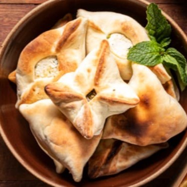 Escolha entre pão artesanal com textura macia ou torradas extrafinas com zaatar. Ótimos para acompanhar pastas ou para um lanche rápido. Caso deseje descartáveis ou temperos adicionais, solicite no momento do pedido.