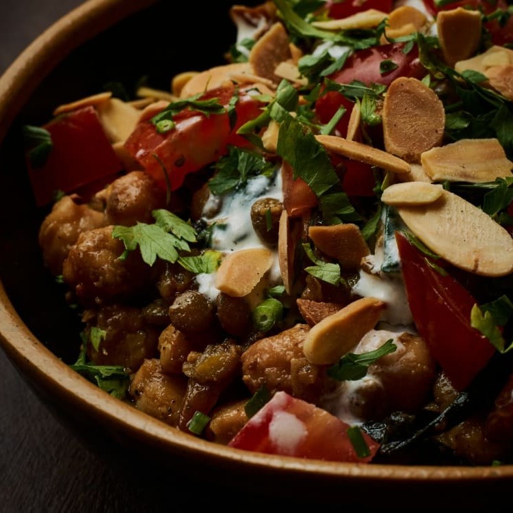 Saborosa e nutritiva, a Salada de Grão de Bico é uma verdadeira explosão de sabores. Os grãos de bico, cuidadosamente cozidos ao ponto 'al dente', harmonizam perfeitamente com o espinafre fresco, os cubinhos de tomate suculentos e a cebola frita, adicionando uma crocância irresistível. O molho, elaborado com iogurte fresco, azeite e tahine, agrega uma cremosidade única, enquanto as lascas de amêndoas acrescentam um toque sofisticado. Esta salada é uma escolha perfeita para quem busca uma refeição leve, saudável e incrivelmente saborosa.