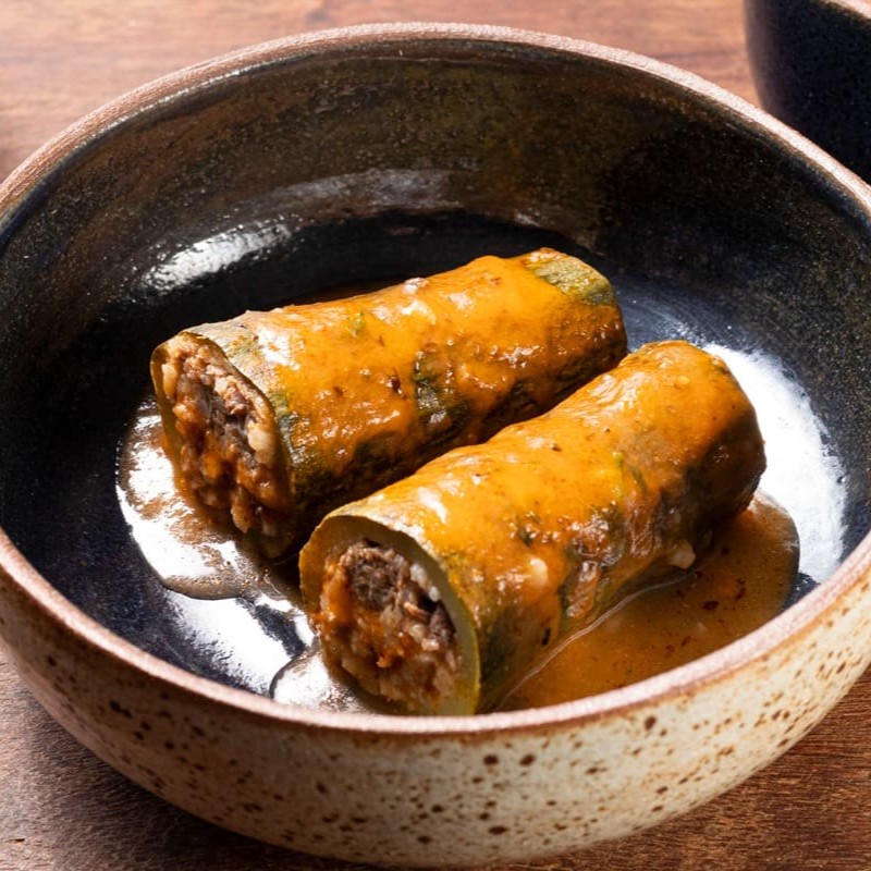 Encante-se com os nossos Charutos de Uva, uma iguaria da categoria 'Pratos Quentes'. Trata-se de uma criação artesanal, meticulosamente elaborada com folhas de uva de primeira qualidade, recheadas generosamente com uma mistura perfeita de arroz e carne selecionada. Cada charuto é cuidadosamente cozido em nosso exclusivo caldo caseiro de carne, realçando os sabores e proporcionando uma experiência culinária inigualável. Este prato é composto por 10 unidades, perfeitas para compartilhar ou desfrutar individualmente. Viva este momento de prazer gastronômico com nossos Charutos de Uva.